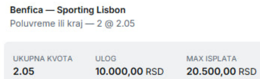 Ovaj tip (i još jedan za LŠ) imam u glavi od utakmice Benfike sa Ajaksom i više ga igram protiv Benfike nego za Sporting, jer odgledao sam malo utakmice Benfike protiv Ajaksa i Nacionala... i ono ne liči ni na šta. Pregršt netačnih dodavanja, totalno nepovezana igra... kao da sam gledao neki naš klub. Utakmicu protiv Ajaksa nije dobio bolji tim nego manje lošiji i s razlogom se nalaze oba tima na tabeli LŠ tamo gde im je i mesto. A protiv Nacionala su imali sreće samo tako - dobili golovima u zadnjim minutima, a Nacional pre toga imao šansu za 2:0 da završi posao i naravno kako to obično biva - na kraju su kažnjeni zbog toga. Ne uopšte dobra forma i mislim da rezultati ne oslikavaju realno stanje na terenu što se tiče Benfike - po mom mišljenju niti malo prijatna situacija pred derbi...