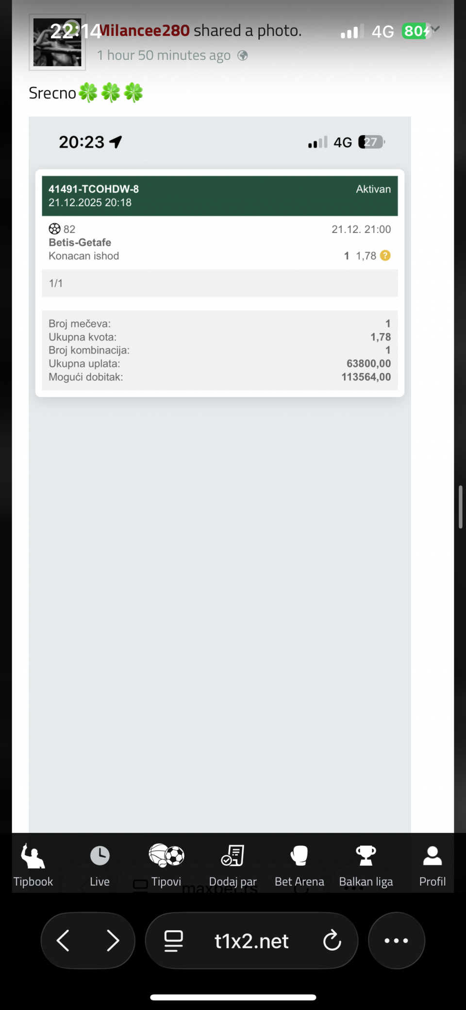 Evo dosli smo i do finale odboika,Svetsko klubno u 22.30h mec e Osaka-Perudza.Igram alternativni poena 180.5 over,kvota na 1.70.Posledan analiz na odboiku za ovu godinu,bili su u jednu grupu i Perudza e dobila so 3:2.Kao spec na ovi sport/ tako me...Evo dosli smo i do finale odboika,Svetsko klubno u 22.30h mec e Osaka-Perudza.Igram alternativni poena 180.5 over,kvota na 1.70.Posledan analiz na odboiku za ovu godinu,bili su u jednu grupu i Perudza e dobila so 3:2.Kao spec na ovi sport/ tako me zovu tu/.,mislim da mec odi zasluzeno u min 4 seta.Za to ako nemate alternativni poena ,to odigraite smelo na 3.5 over seta.Evo podarak ot meni za Koleda, Show more