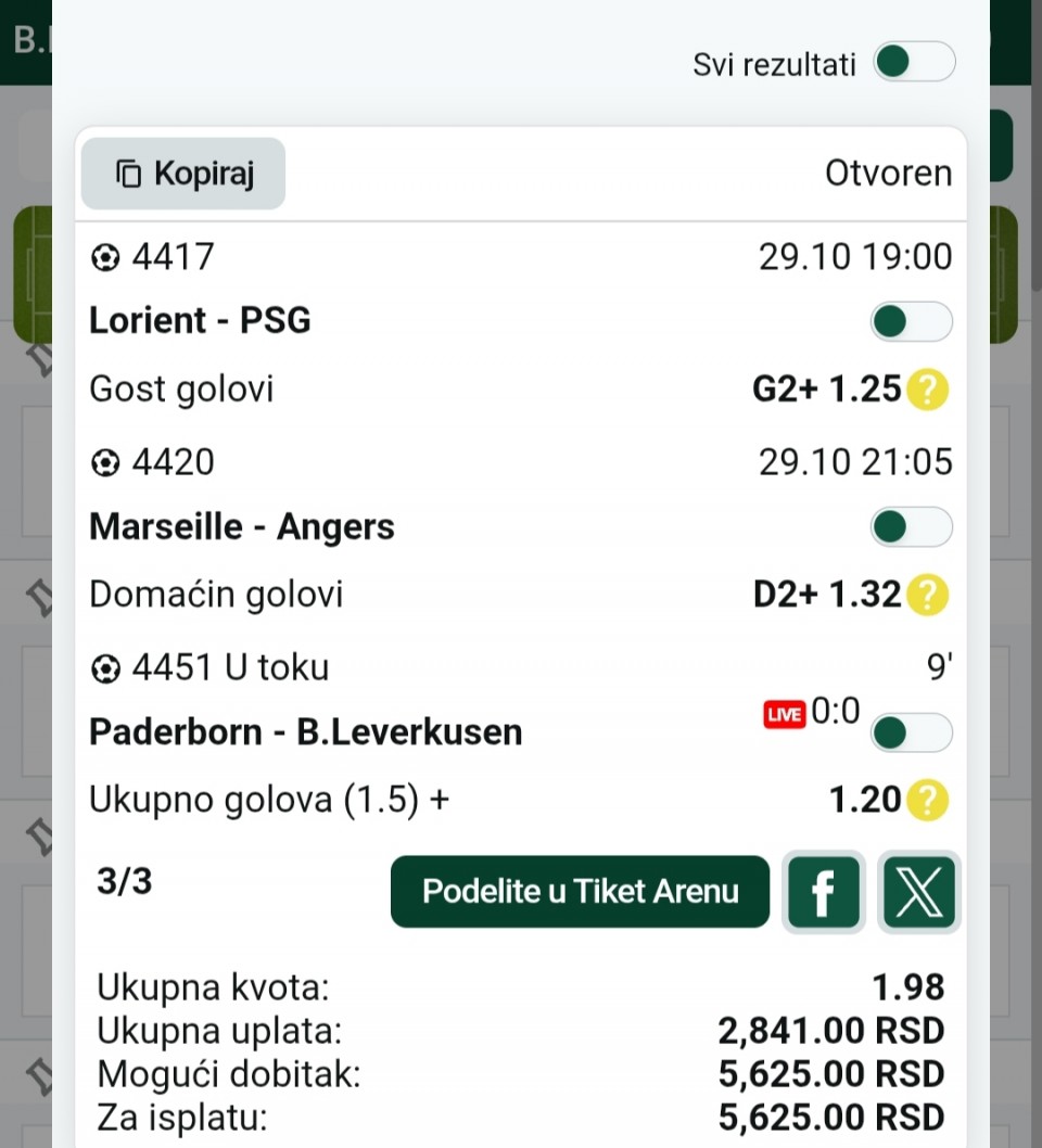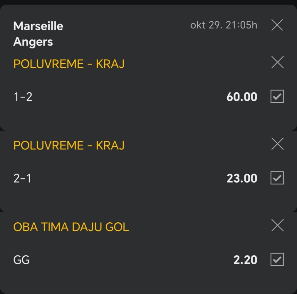 Strelac na mecu: Marsej - Angers M. Greenwood...Tiket 1: