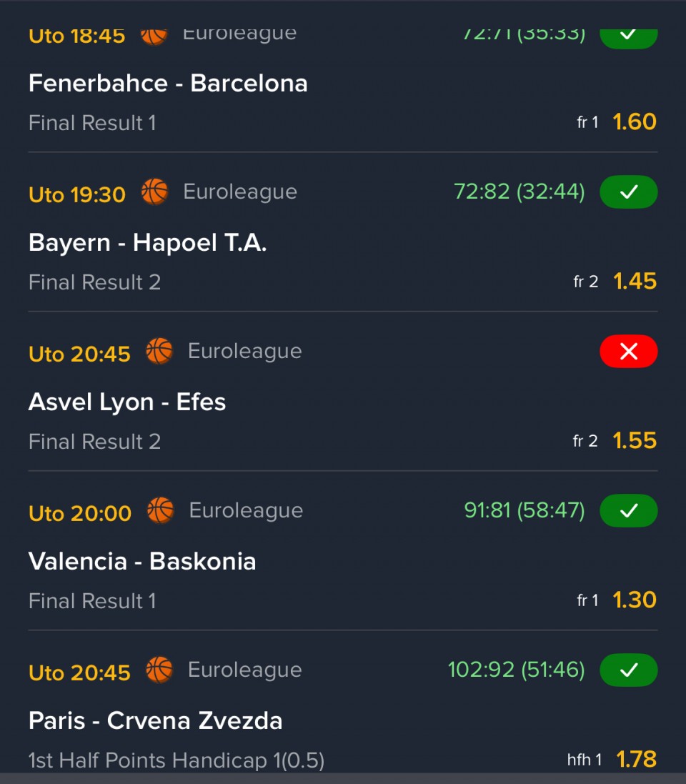 Dali je ralno da sam igrao opet par gde je kraj u kosarci X... evo kako veceras ,tako pre neki dan isto Barsa - Baskonia ... sto se dogadja jedom u 100 meceva,meni za redom evo drugi put ...