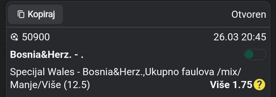 Wales - BiH kartoni 5.5 više (2.30)