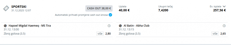 Obe ekipe igraju mnogo napadalan fudbal sa visokim tempom. Avstalija je znana po golovima i dinamicnim utakmicama a ove ekipe međusobno rade dajo golove. Tako da je ova kvota POKLON pred novo godinu zato je uzimam sa...LIVE: ukupno gola 2+ 1.55 kvota