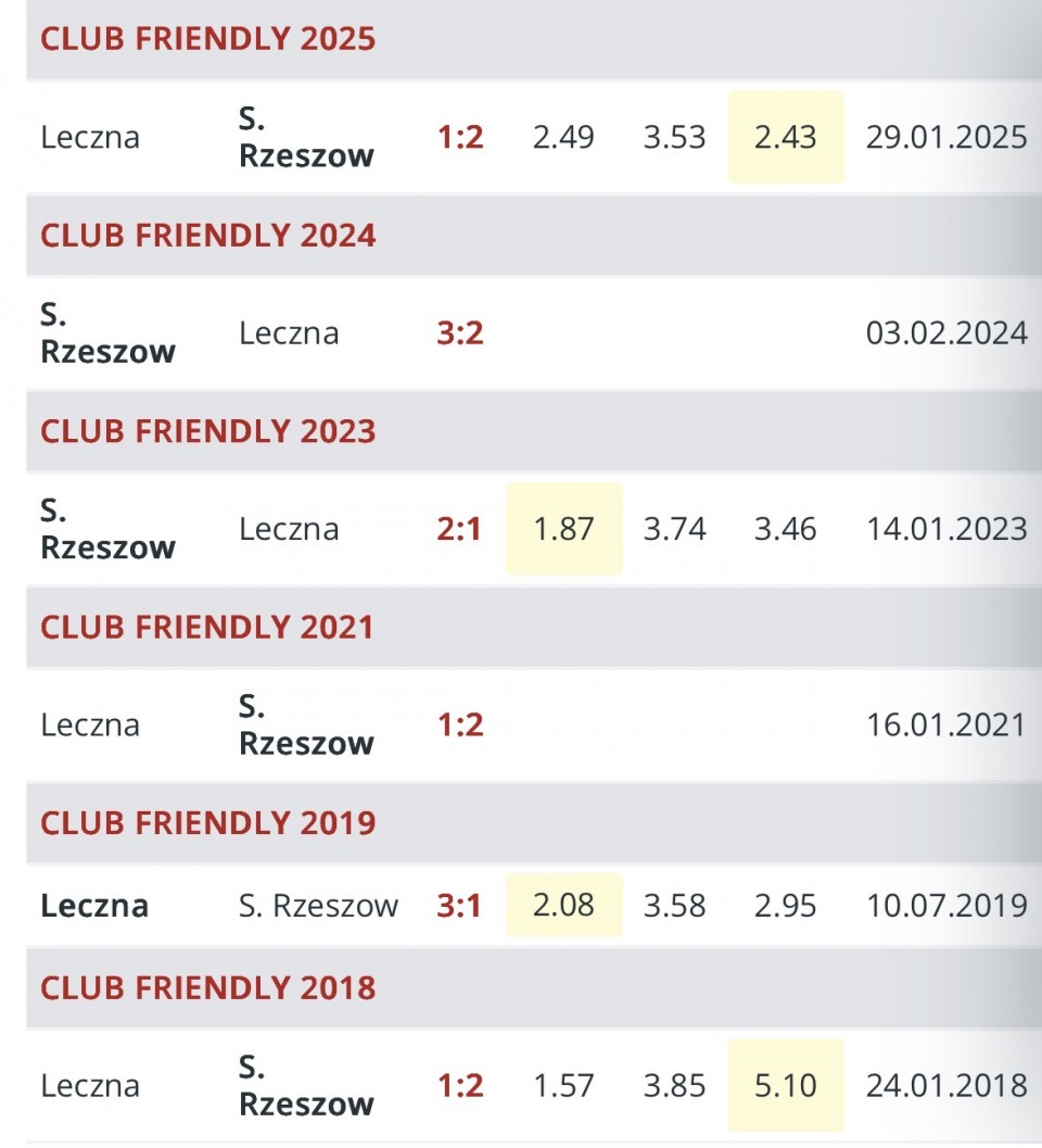 🇵🇱 13:00 Leczna - S. Rzeszow GG (1.57)/ GG&I1+ (1.77)/ 2-1 (30.00)/1-2 (38.00)