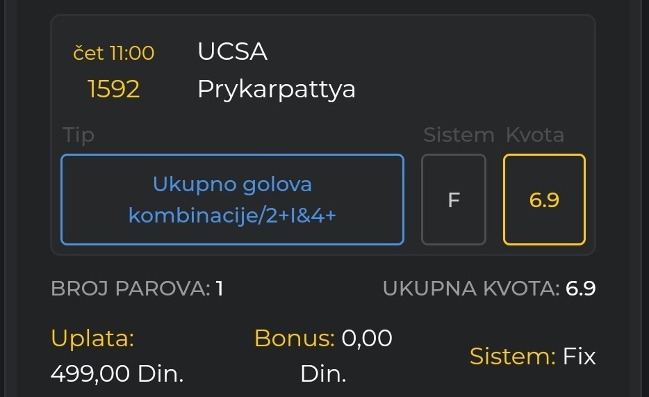 Žungul Kladu treba shvatat kao zabavu, a ne izvor zarade... Ulažeš, kolko si spreman izgubit... A, ta tvoja tekma je playoff tekma, zar si tolko siguran, da će se u prvom poluvremenu, odma ekipe otvorit??? 8 hours 20 minutes ago