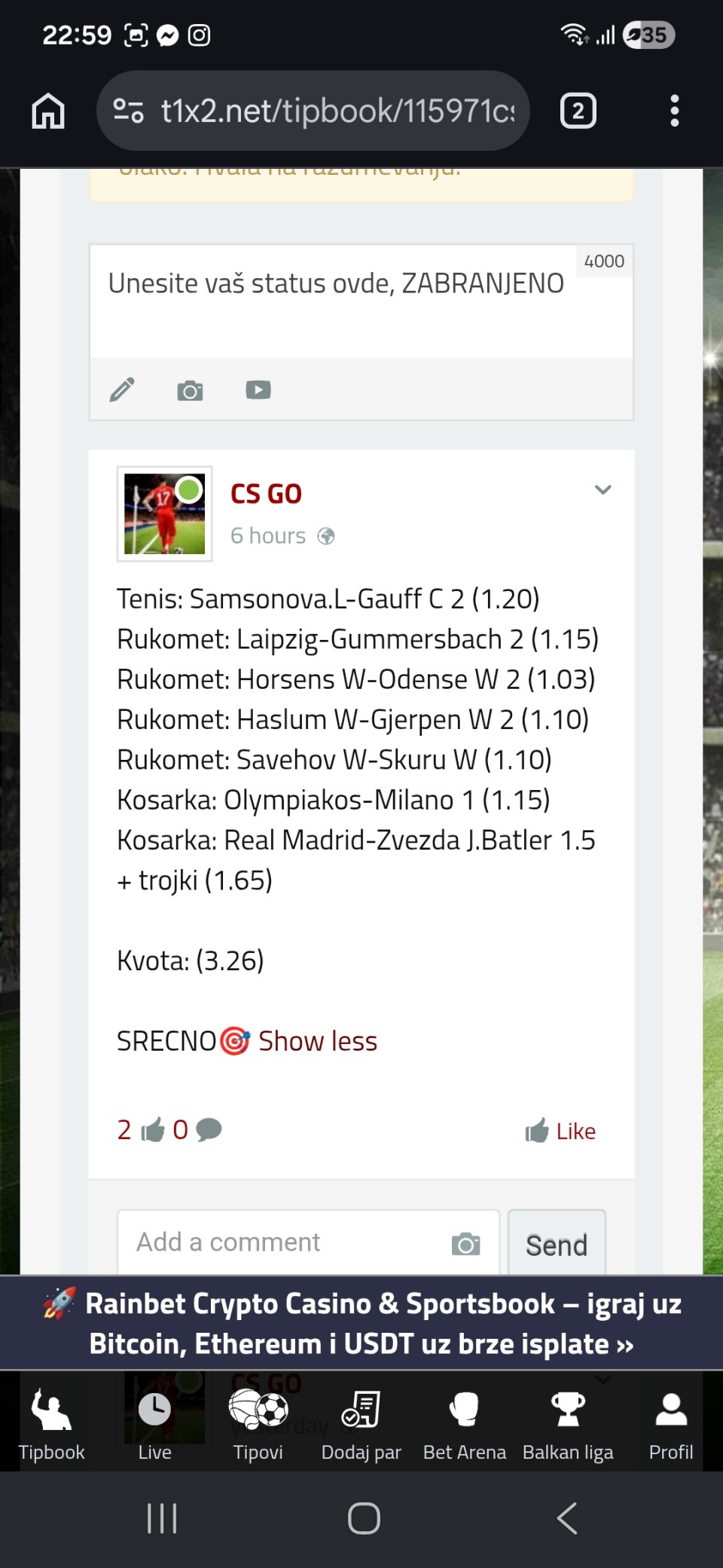 tip: tačan rezultat 4:1 (73 minut trenutni rezultat 3:1)