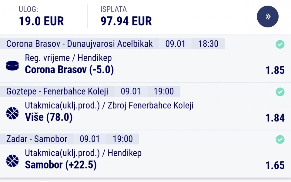 Krećemo standardno sa Rusima pa tokom dana igram nešto što smatram dosta sigurnije za danas. Srećno 🏆