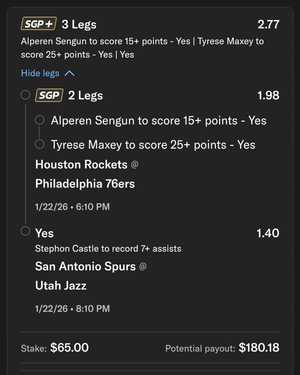 Tre jones sinoc kao sto sam rekao ocekujem izmedju 19-29min za njega, imao je 27' uz to, 1/2 s linije penala, 4/5 za 2p (uglavnom polaganja) i 1/2 za 3p, dobar procenat suta, mada uglavnom svoje poene postize sa polaganja pa i generalno kroz sezonu ima dobar procenat realizacije, takodje asistencije sjajne, 7 veceras na 13 potencijala prosto pik koji sam morao probati jer sam i naveo da protiv PNR ball handlera Minesota je prosto uzasna i kvota 1.95 cini mi se pred sam pocetak meca, ocigledno smo videli nesto sto kladionica nije )