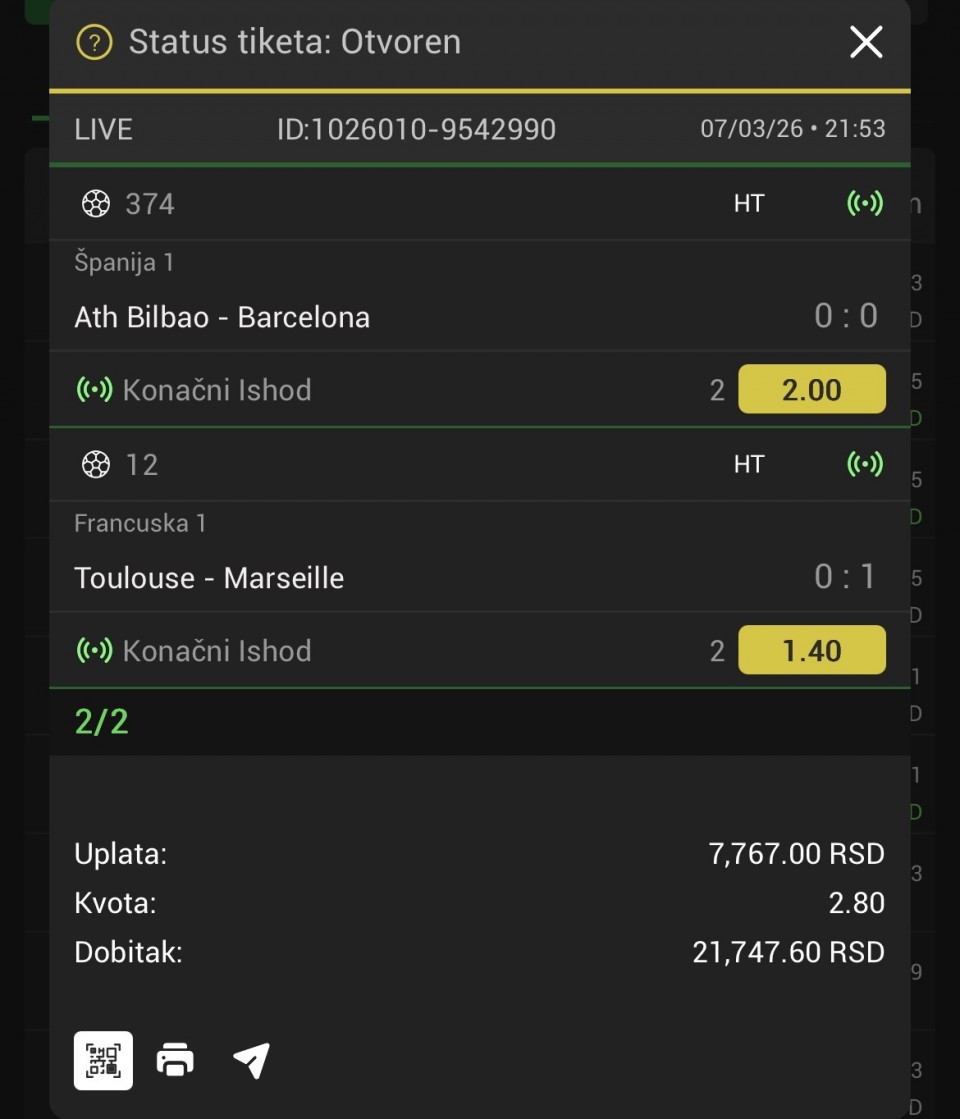 Ja sam mislio da ispratim sve utakmice po 500 ili 1000 dinara oba prelaza pa mozda da duplam kad uhvatim jedan ili da duplam dok ne uhvatim 2,ne znam ni sam.