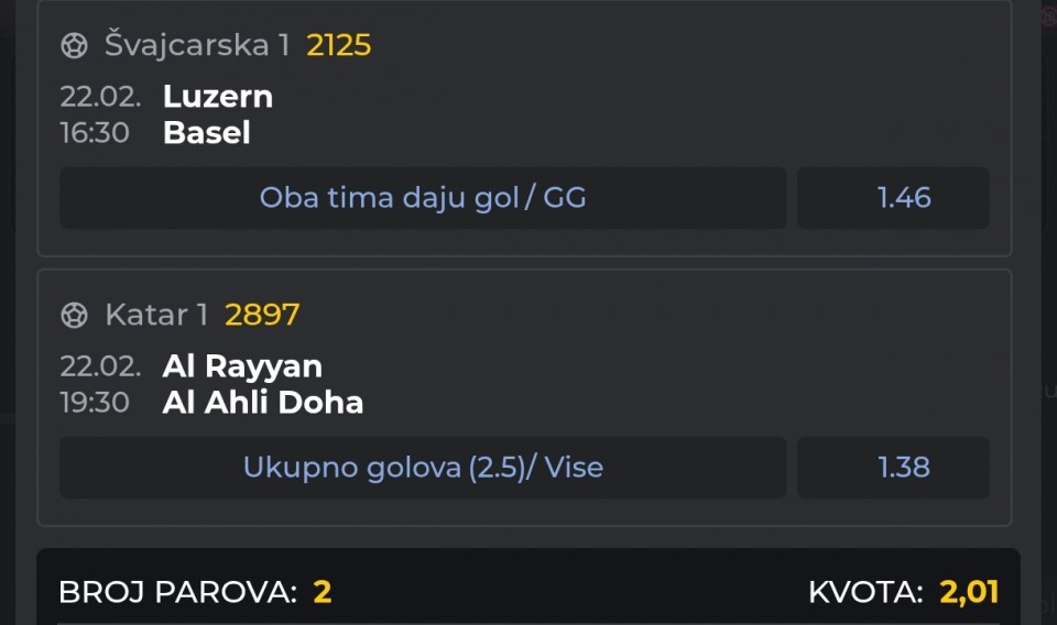 22.02. Kvota: 2.36 → prvi korak ✅