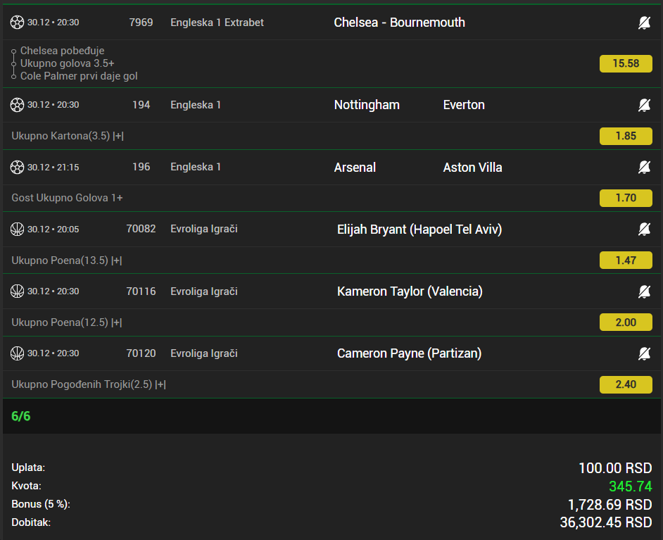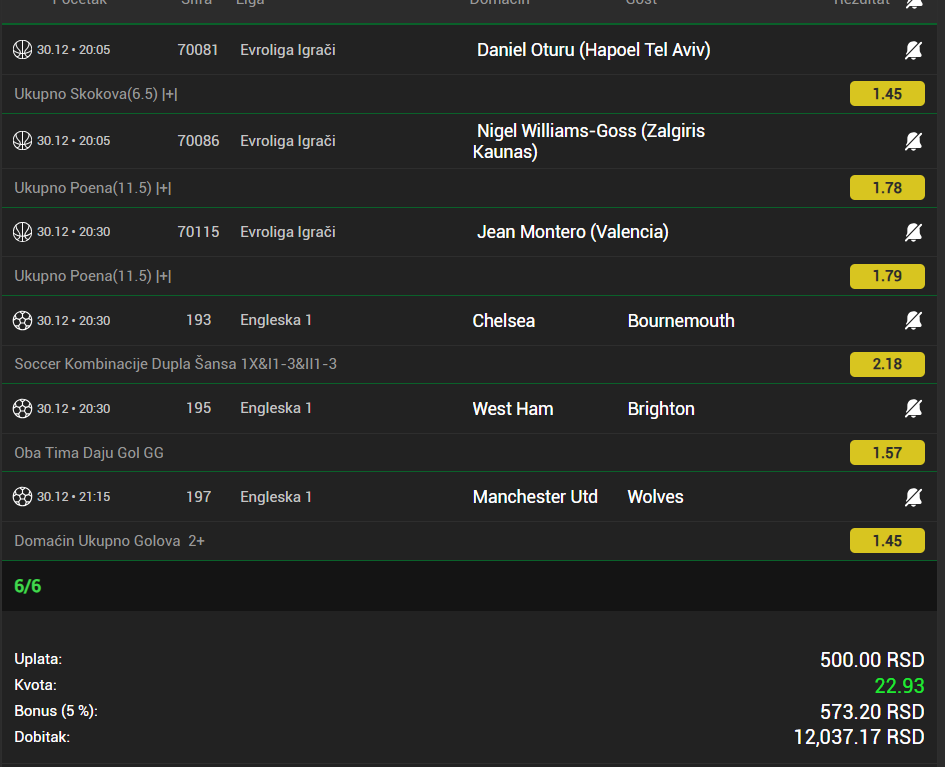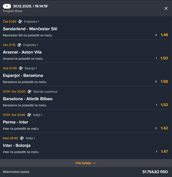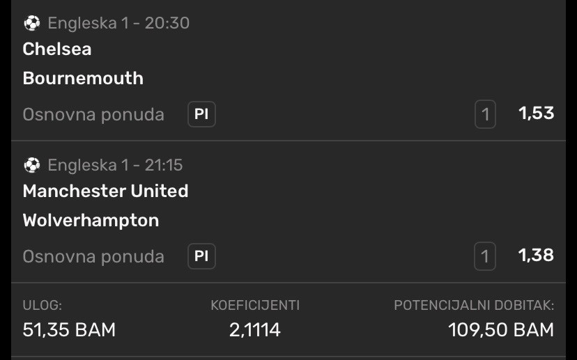 U slucaju prolaska, dobitak duplam na kvotu 3 sutra.