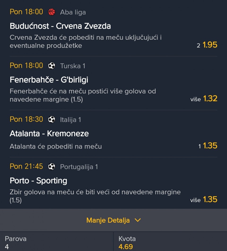 19.30h. Črobri - Stal...19.00h. Portimonense - Benfika 3+ (1,83)
