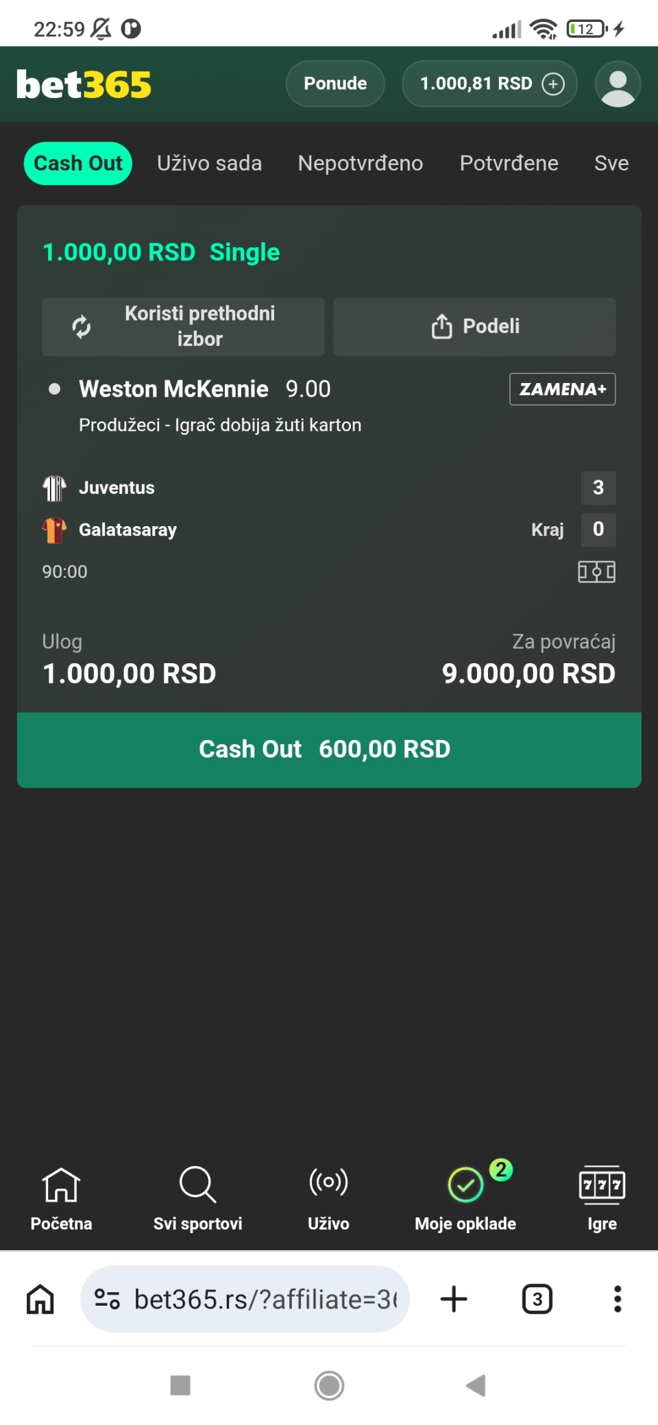 Prognoza rezultata & kartona - 3:1 & 6
