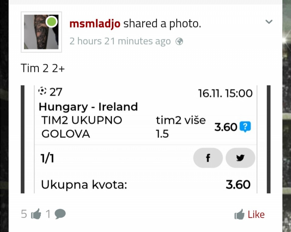 tip: over 2.5 (76 minut trenutni rezultat 1:1)