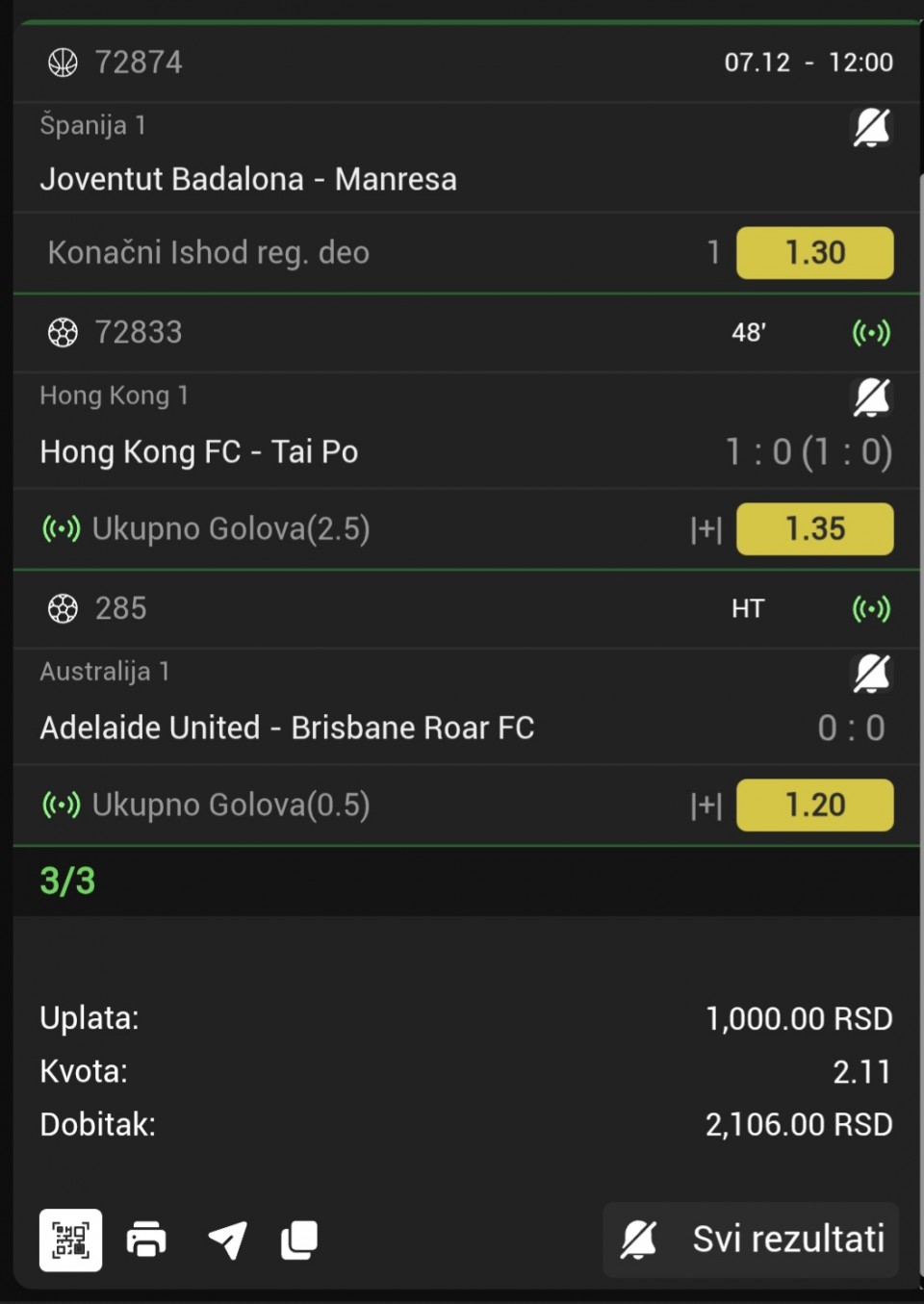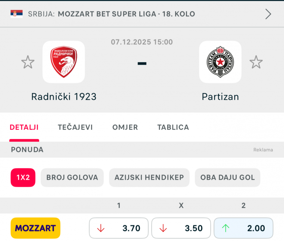 tip: 1X (45 minut trenutni rezultat 0:1)