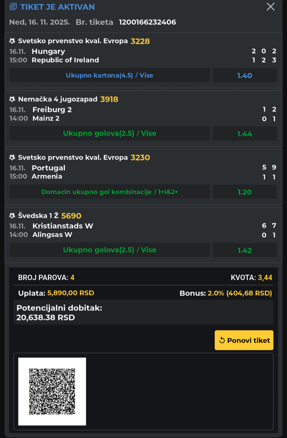 Nogomet double 1,92