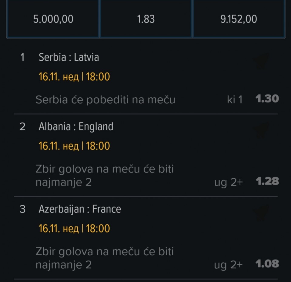 tip: over 2.5 (73 minut trenutni rezultat 0:2)