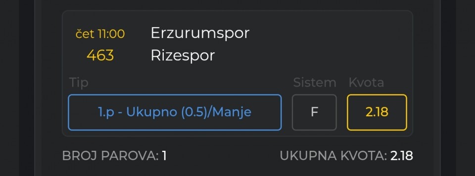 Danas mi nije toliko sigurna ponuda , juce 4/4 mogao sam ruku dati . Danas cisto da se proba.