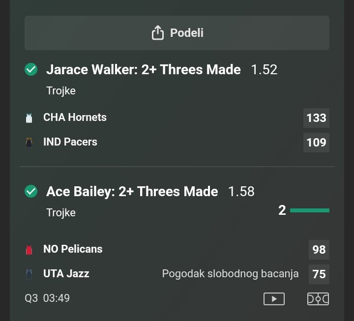 puno verujem obojici 🤝 znaju tako brzo da bocnu trojku nekad i po 3-4 lagano, videcemo večeras