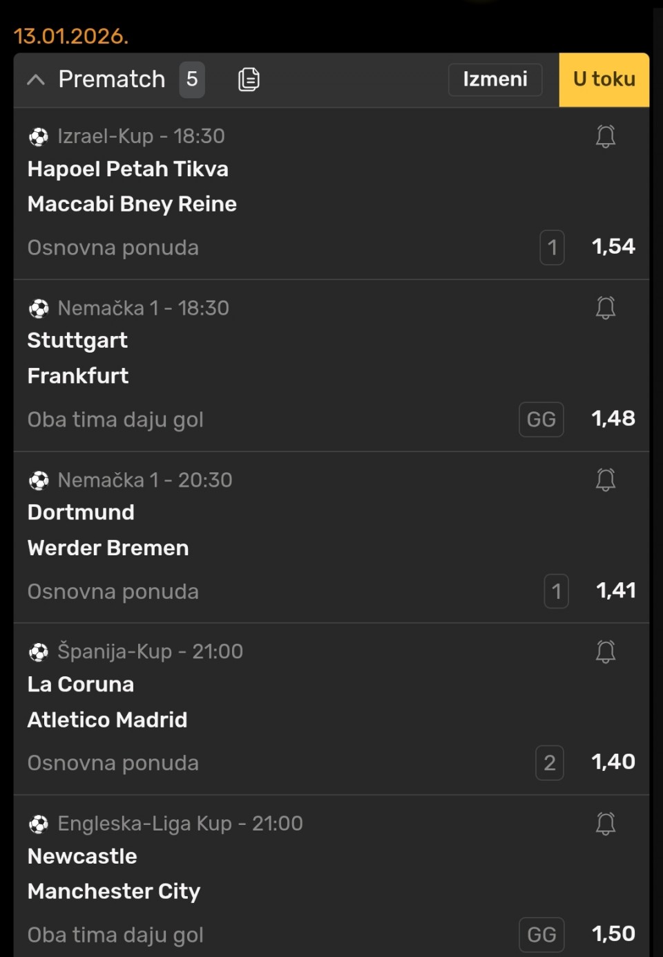 Danas igram ovo kvota je oko 6-7, nadam se prolazu sve su realne prognoze.
