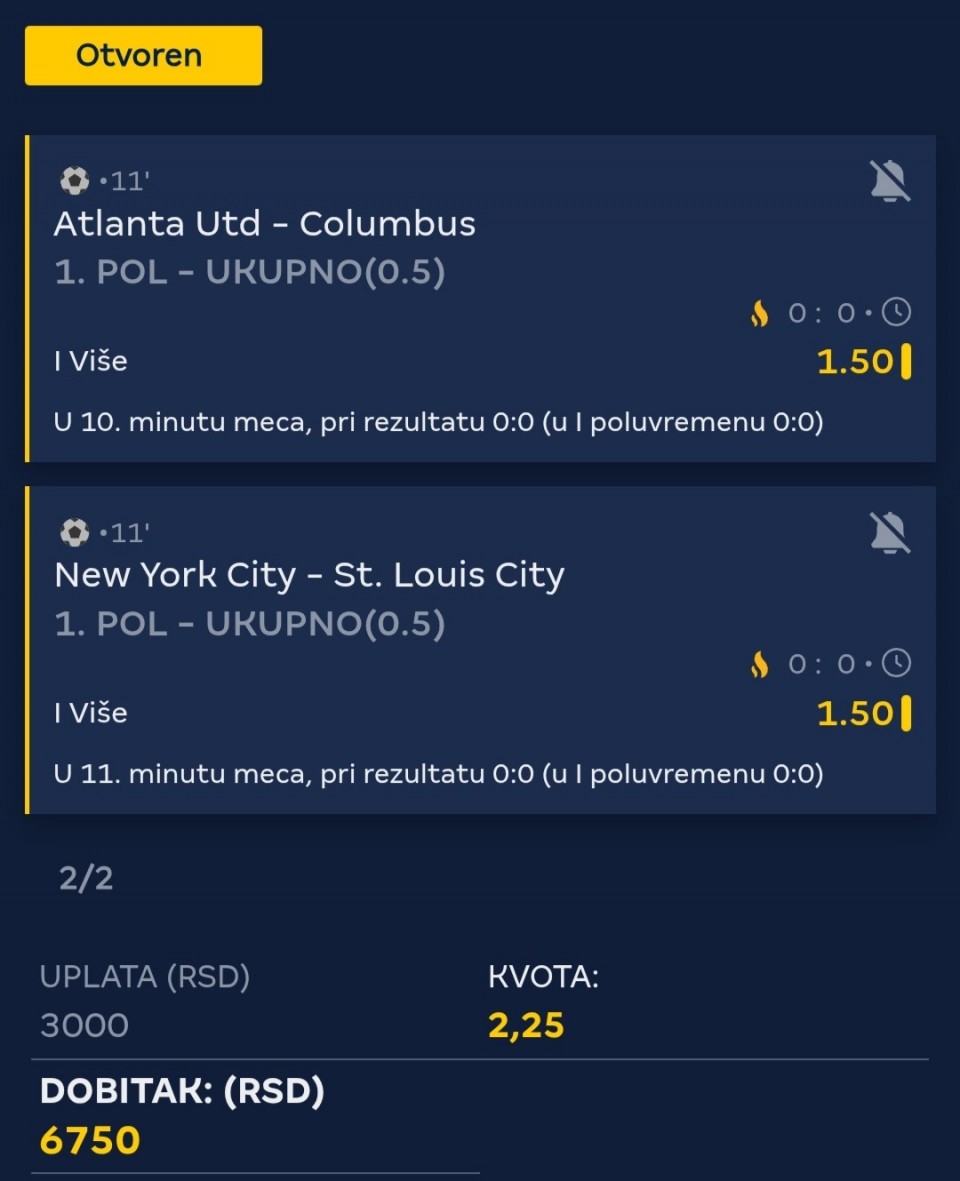 Poluvreme: 0:1...WIN WIN WIN IZ 2U1....✅✅✅Nadam se da sam nekome donela sreću 🫡🍀🍀🍀