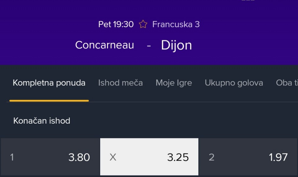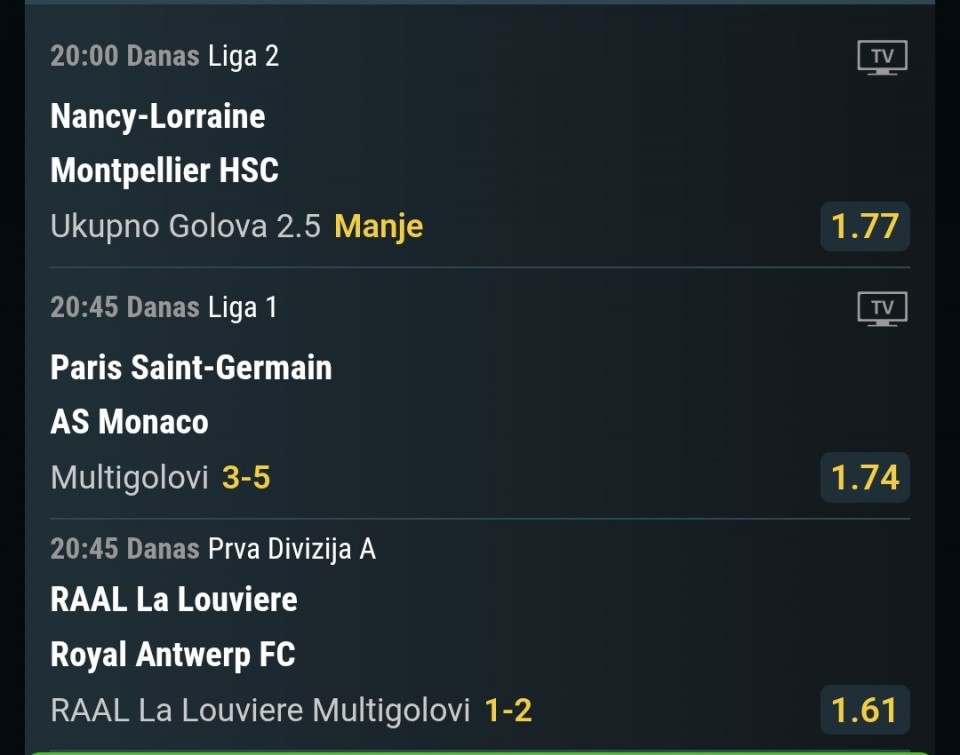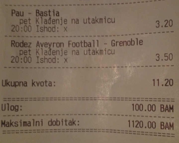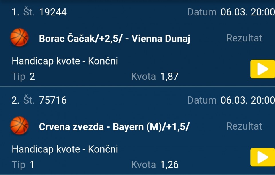 Nije me bilo duze vrijeme a posto cu veceras probati sastaviti nesto podijelit cu i ovdje sa vama. Ukupna kvota je 6.33.