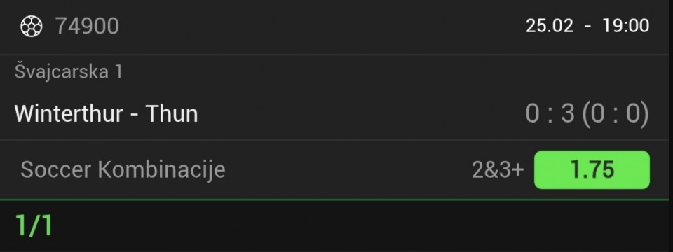1. korak Keln - Hofenhajm X2&2-5 (1.70) 2:2 ✅