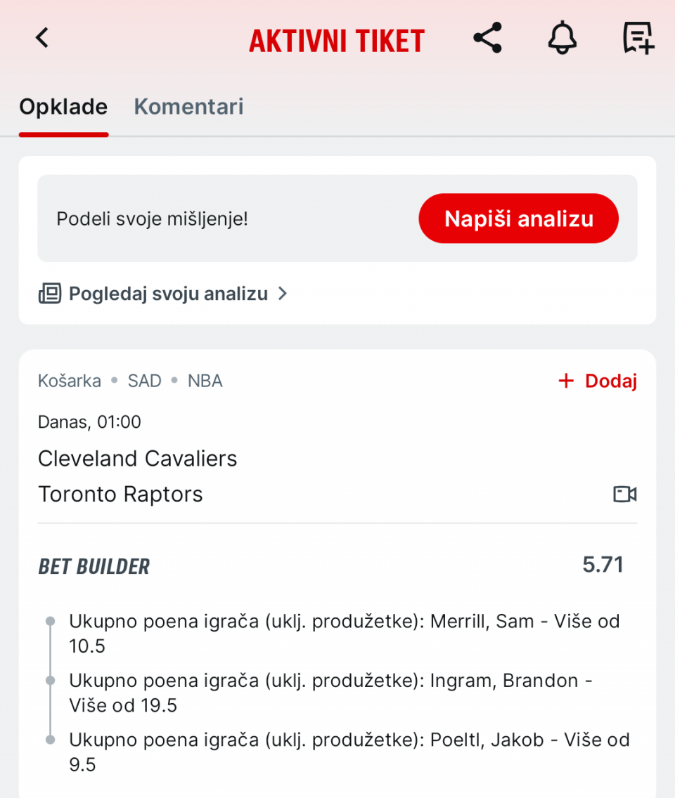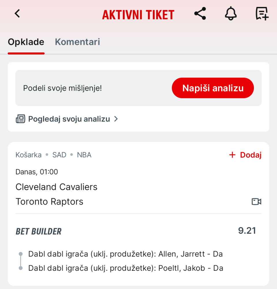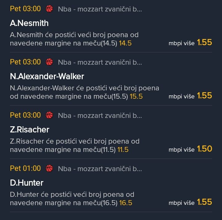 ali su podigli granice na 18.5 i 13.5 tako da odustah i...NBA tiket