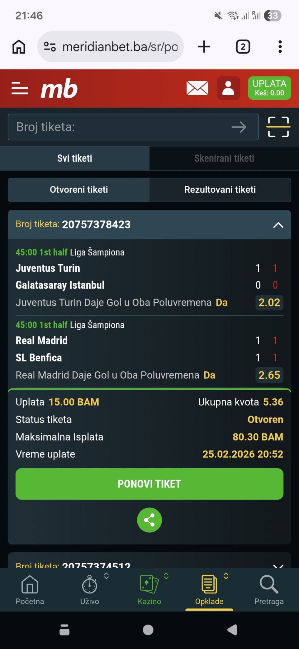 🇪🇸 21:00 Real Madrid - Benfica Arda Guller vise od 0.5 suta u okvir gola (1.55)/ Amar Dedic vise od 0.5 suta ka golu (1.73)