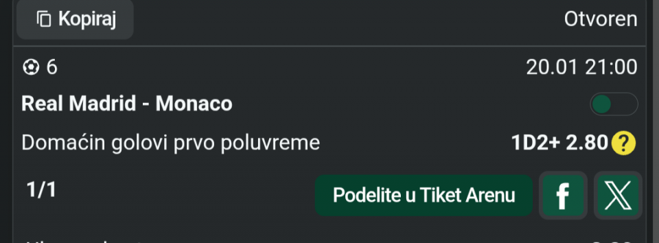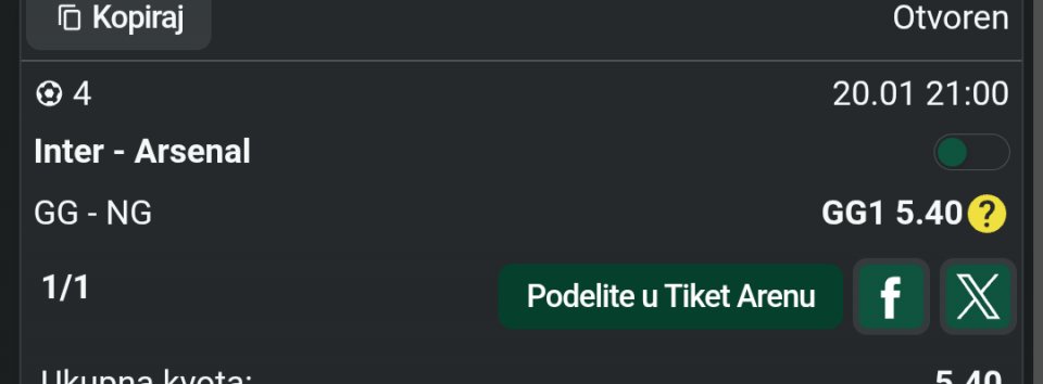 tip: X2 (33 minut trenutni rezultat 2:0)