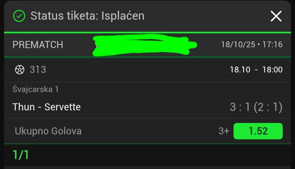 🇨🇭 Thun – Servette GG&3+ (1,72) ✅️