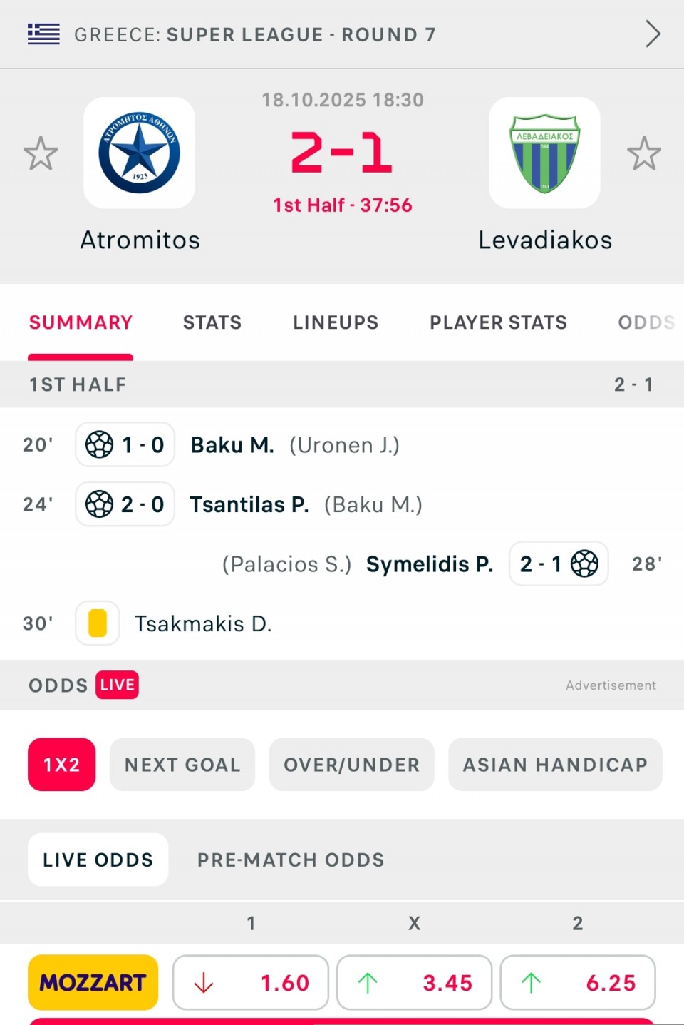 zbroj golova Ahouansou Philipp (5.5) over koef 1,75