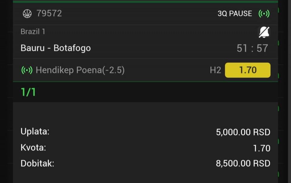 Moje iskreno oprastanje. Mora se priznati poraz kad nešto ne ide a kladionica je definitivno gubitak vremena i novca. Ovaj par je bio presudan čekao sam Oturu za 10 pts i trener ga je izveo pet min pred kraj treće četvrtine i nije ga uvodio nikako. Iako...Moje iskreno oprastanje. Mora se priznati poraz kad nešto ne ide a kladionica je definitivno gubitak vremena i novca. Ovaj par je bio presudan čekao sam Oturu za 10 pts i trener ga je izveo pet min pred kraj treće četvrtine i nije ga uvodio nikako. Iako je bio solidan i ocene govore tako ovde samo mogu zaključiti da ga je trener igrao ispod 😅
