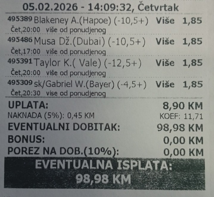 Igran je sistem 2,3,4/4 i prolaz steta sto nije bar 3/4 ali nema veze...