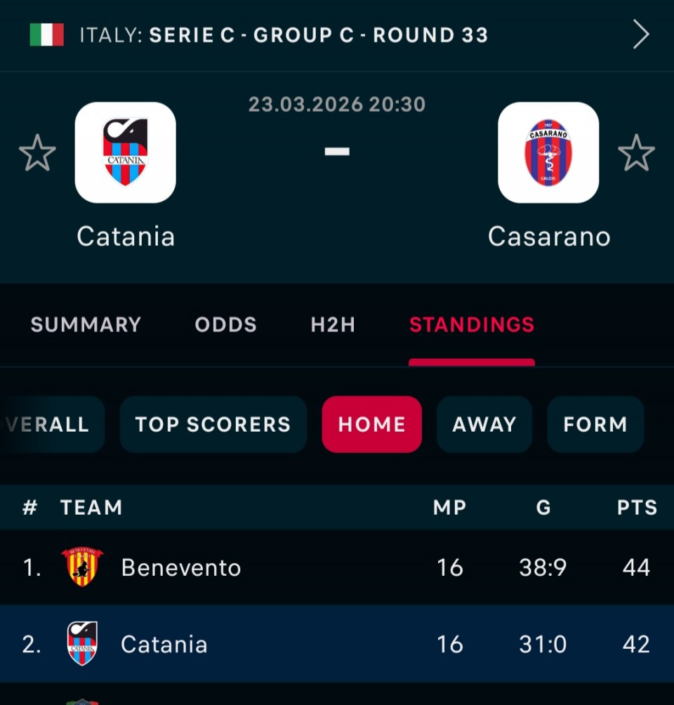 20:30 Calcio Catania - Casarano C.