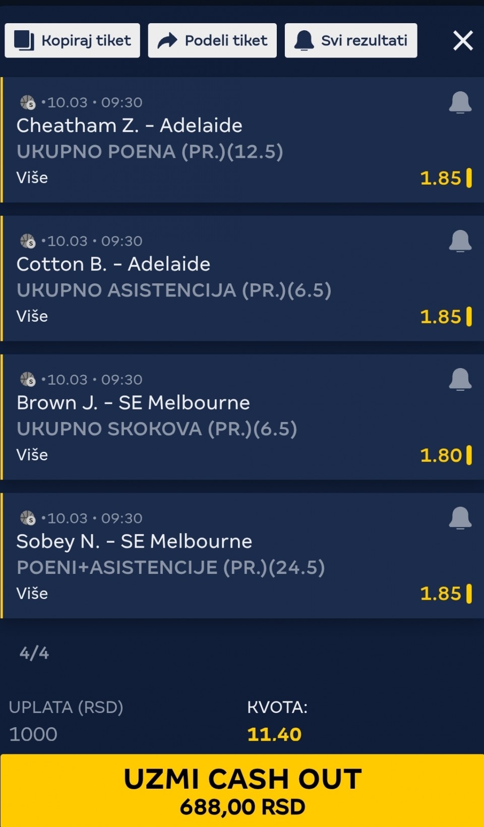 N.Jokic (DEN) - 12.5+ reb @1.85...Sinoc pad, DeRozan nije ni igrao, Zion ostao na 20 a Murray samo dvije asistencije za divno cudo..