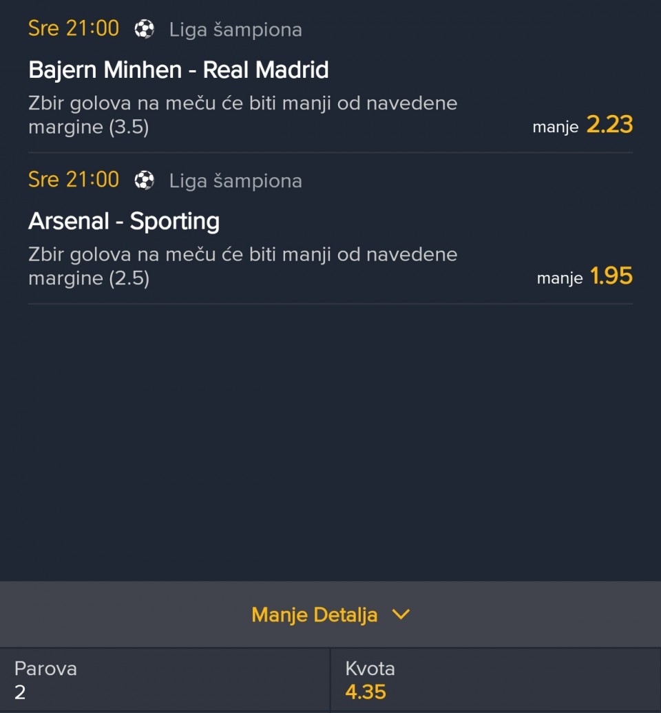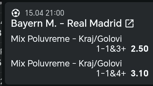 Fudbal: BAYERN-REAL MADRID 1X (1.16)