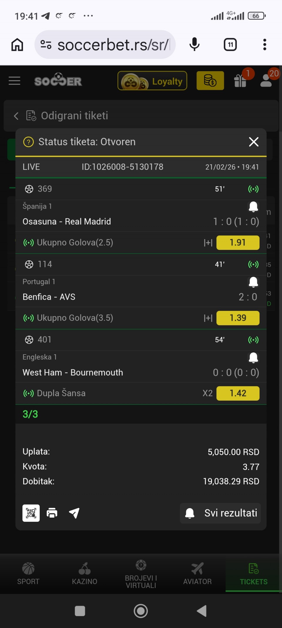 tip: over 1.5 (68 minut trenutni...LIVE
