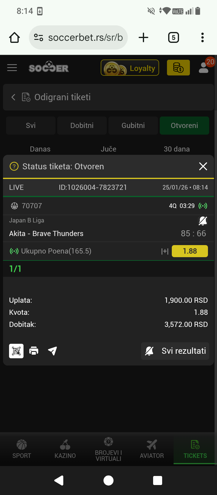 Od četvrtka do zakljucno sa danasnjim danom od 8 dubl tiketa pogodjeno je 6. Trenutni prihod + 84.538 za 3 dana. Sutra novi dan idemo jako💪🏼