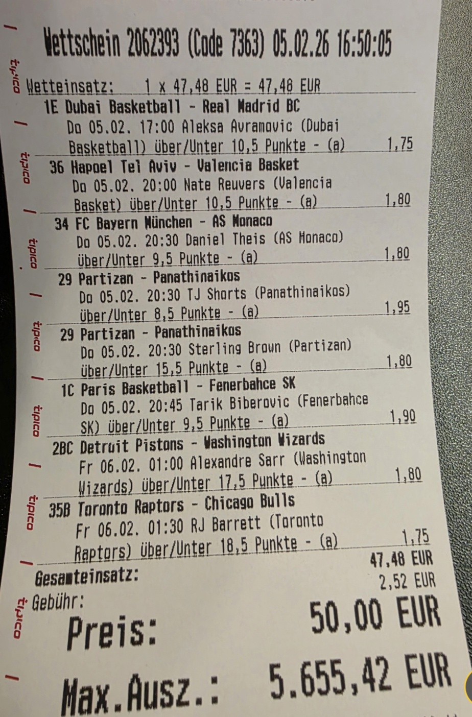Za kraj tip dana reklo bi se Musa je nakon duže povrede konačo uhvatio takmičarski ritam i iz meča u meč igra i uzima sve više šuteva, ovo je utakmica u kojoj bi mogao i da pretekne protiv Reala i da ode na 15+ poena