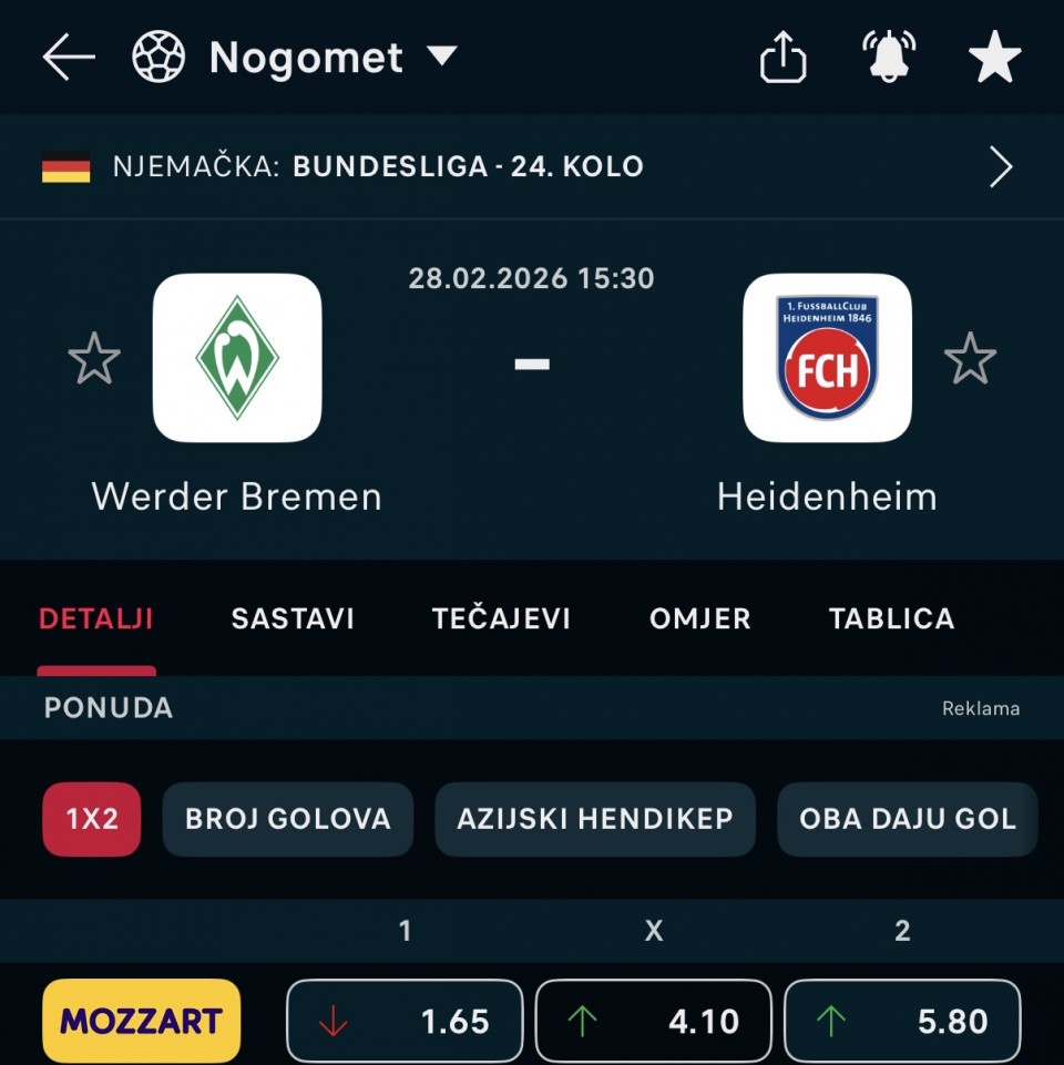 🇩🇪 15:30 Werder Bremen - Heidenheim 3+ (1.58)