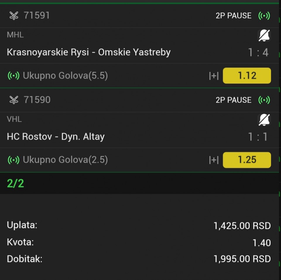 tip: over 2.5 (72 minut trenutni rezultat 2:0)