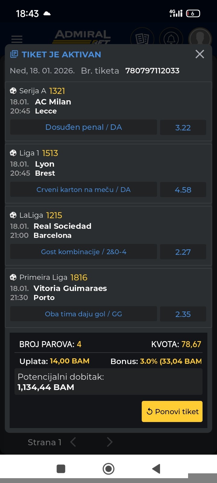 zbroj golova Marsenić Mijajlo (2.5) ISPOD...Indija- UAE preko 58,5 koef 1,85 21-43 f.t