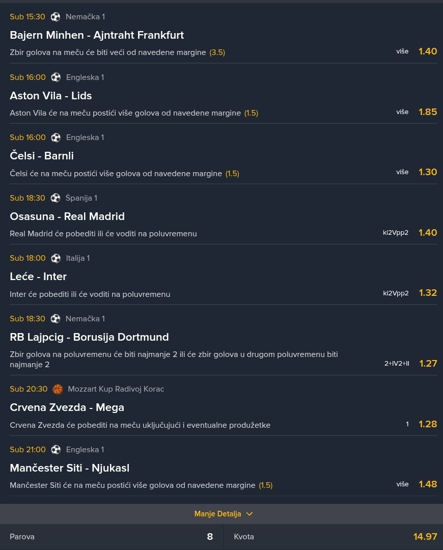 22.02. Kvota: 2.36 → prvi korak