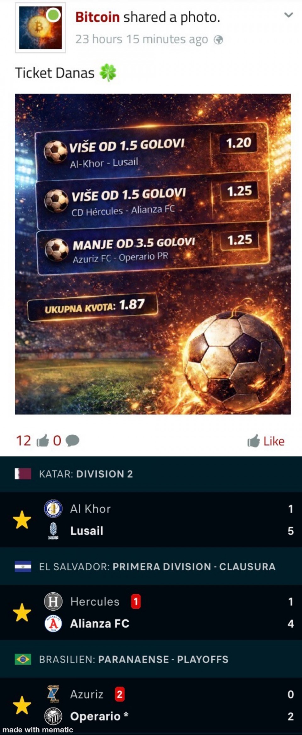 Ne znam sta je ovo danas, jos mi je jedan ranije danas tiket prosao, nisam ga bio okacio, Sevilja i Kopenhagen mi dali golove u nadoknadi za prolaz,