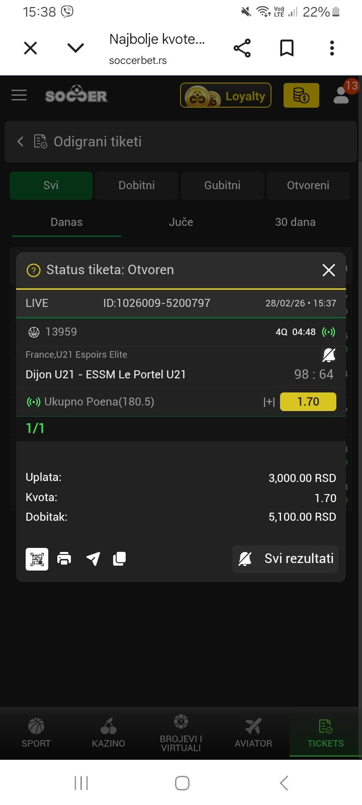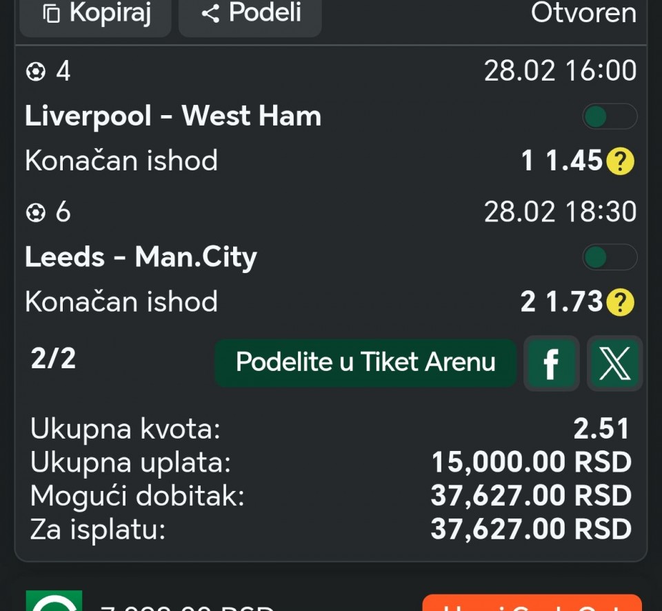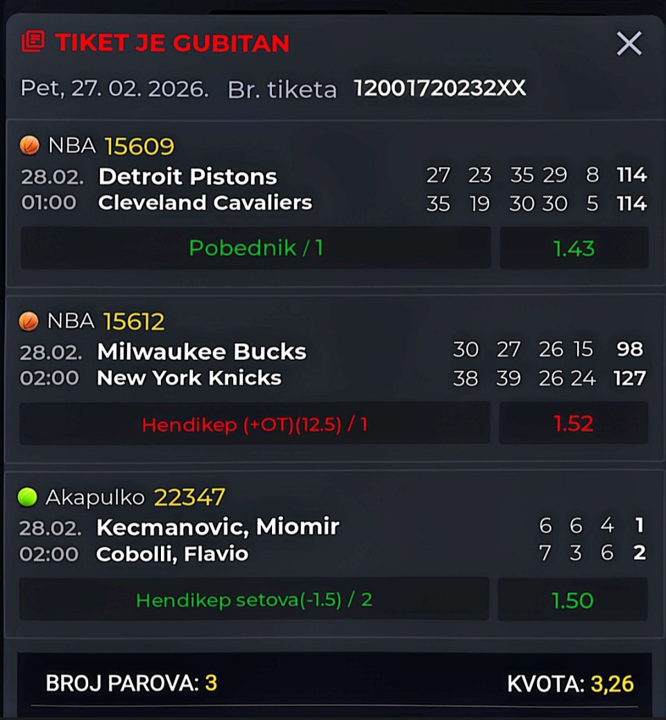Poštovani članovi grupe,tiket tripl na žalost pad.