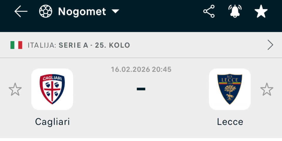 Mnogi su pisali o tome da postoji sumnja da ova dva tima igraju 3 za 3. Prošle sezone je Cagliari pobedio rezultatom 4:1 (0:1), bio je to prelaz iz 2-1. Lećeu gori i trebaju mu bodovi, ako postoji dogovor između ova dva kluba zašto ne bi bio vraćen...Mnogi su pisali o tome da postoji sumnja da ova dva tima igraju 3 za 3. Prošle sezone je Cagliari pobedio rezultatom 4:1 (0:1), bio je to prelaz iz 2-1. Lećeu gori i trebaju mu bodovi, ako postoji dogovor između ova dva kluba zašto ne bi bio vraćen i prelaz.