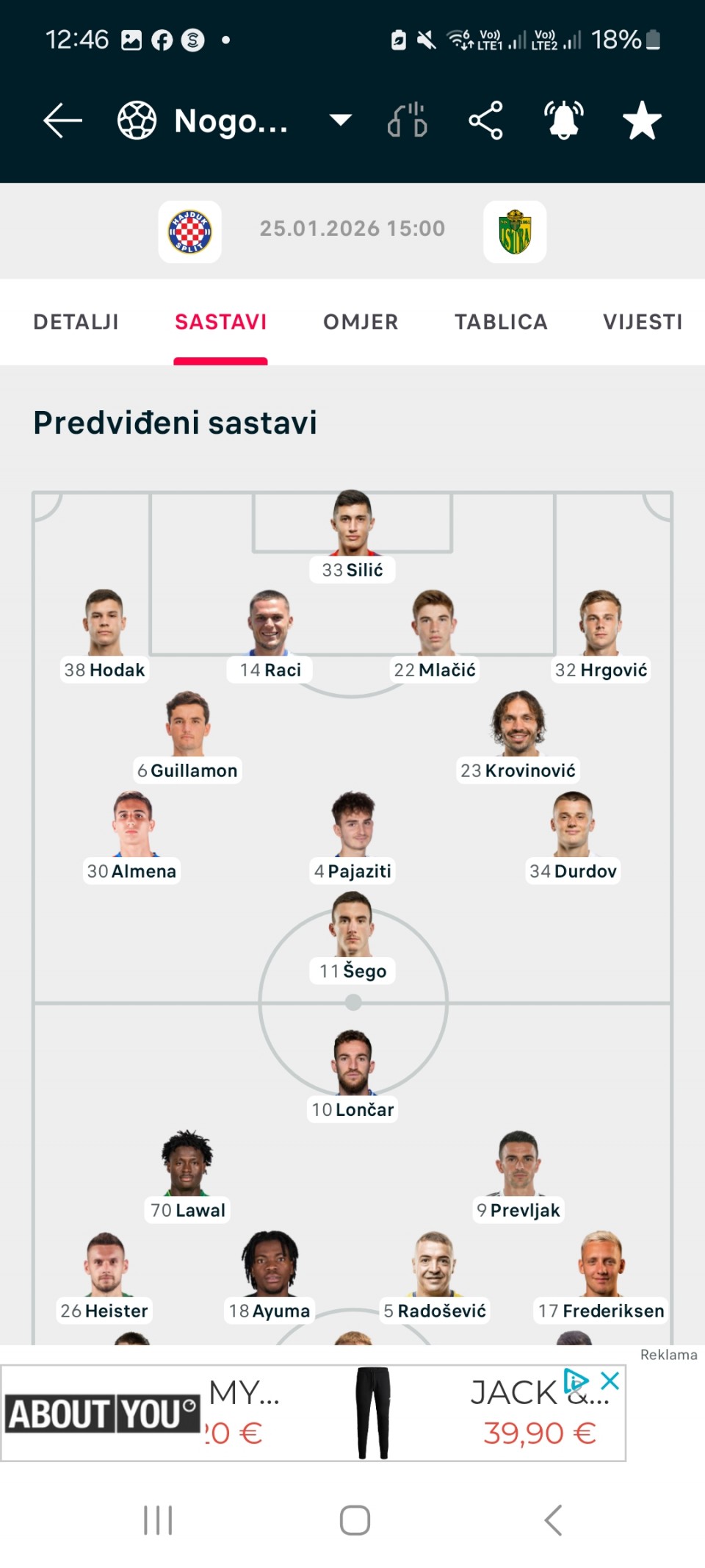 Procurio sastav Hajduka za današnju utakmicu; evo tko će zamijeniti Livaju i Rebića
