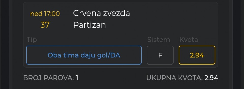 17:00 Crvena Zvezda - Partizan X (4.40 kvota)