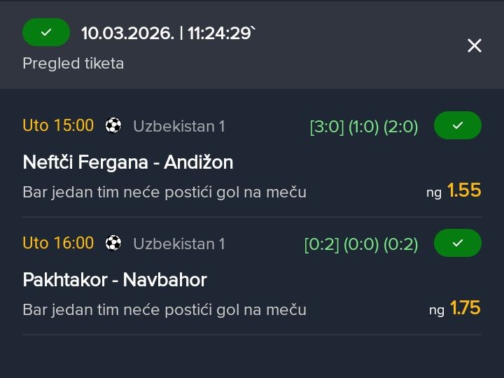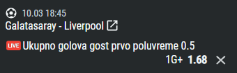 Atletico M - Tottenham D2+ 1.85 (Vidio sam da je dosta ljudi tipovalo ovako za Atletiko, prvi put kada sam vidio kvota je bila oko 1.50-1.60 a sada je 1.85, zašto tolika razlika… ne znam, nisam uspio pronaći da je došlo do neke promjene u sastavu ili bilo šta, nadam se samo da ovo neće biti neki uticaj kladionica na ishod meča…)