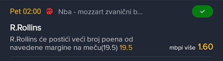 (10.11.) 𝚆𝚒𝚗...skidamo 3.72 kvotu, i dva nba singla